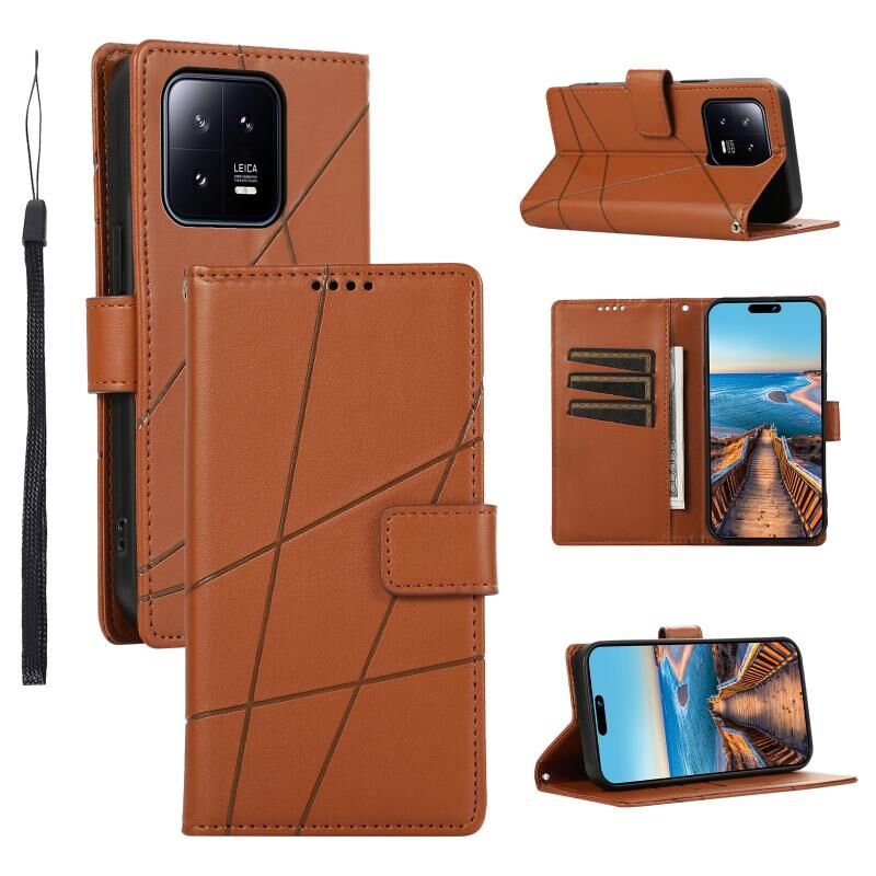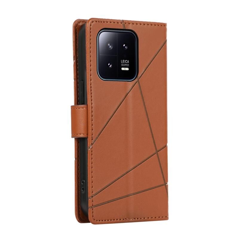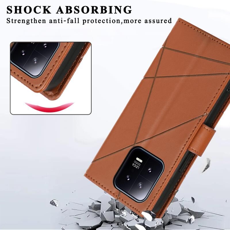 Θήκη τηλεφώνου Xiaomi 13 από γνήσιο δέρμα PU με ανάγλυφη υφή και μπλε χρώμα.