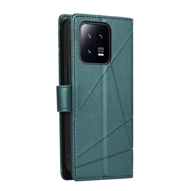 Θήκη τηλεφώνου Xiaomi 13 από γνήσιο δέρμα PU με ανάγλυφη υφή και μπλε χρώμα.