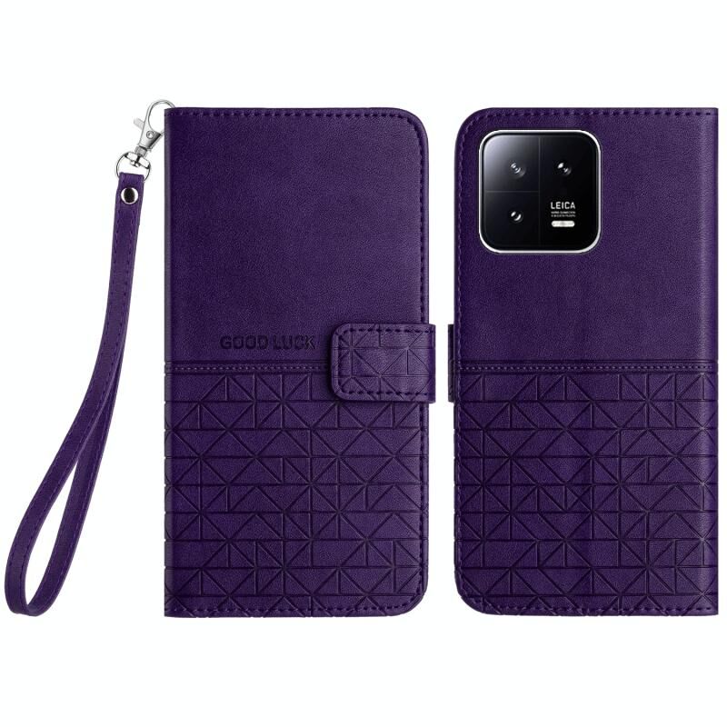 Θήκη δερμάτινη με κορδόνι για Xiaomi 13 με ανάγλυφη υφή (Μωβ)