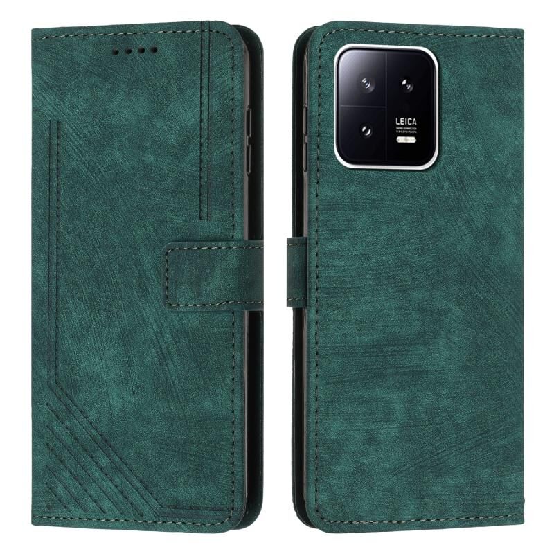 Για Xiaomi 13 δέρμα αίσθηση δέρμα λωρίδα μοτίβο υπόθεση τηλεφώνου με κορδόνι (πράσινο)