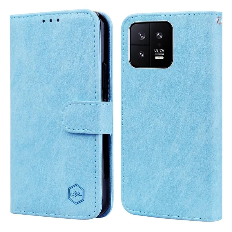 Θήκη κινητού τηλεφώνου για Xiaomi 13, με υφή δέρματος λαδιού και υλικό PU + TPU (Ανοιχτό μπλε)