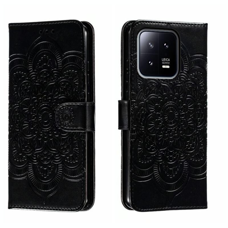 Για Xiaomi 13 Sun Mandala ανάγλυφο μοτίβο τηλέφωνο δερμάτινη θήκη (μαύρο)