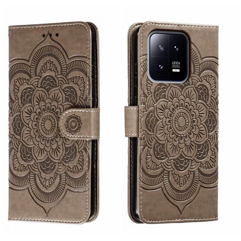 Για Xiaomi 13 Sun Mandala ανάγλυφο μοτίβο τηλέφωνο δερμάτινη θήκη (γκρι)