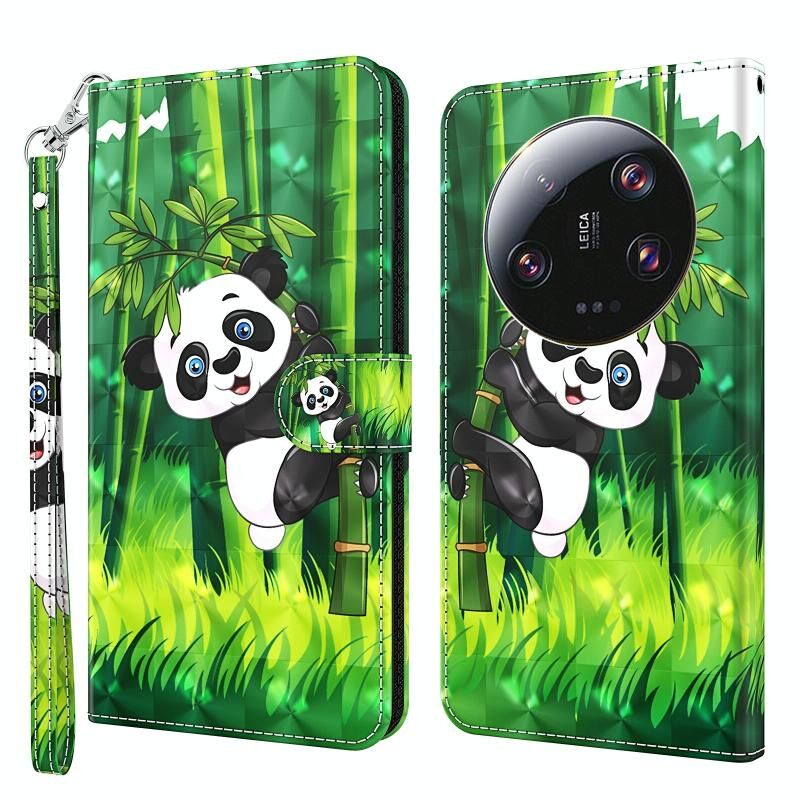 Θήκη τηλεφώνου δερμάτινη με σχέδιο 3D ζωγραφικής για Xiaomi 13 Ultra (Bamboo Panda)