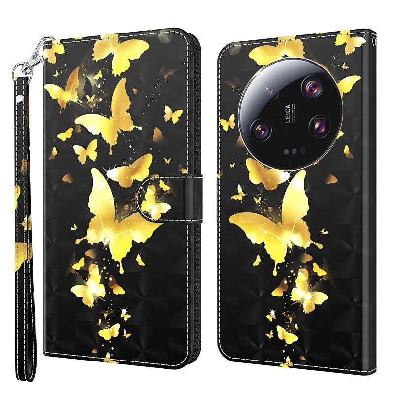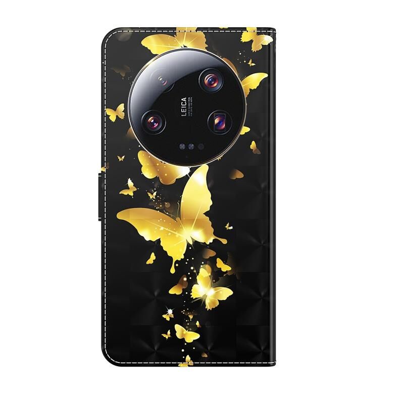 Θήκη τηλεφώνου δερμάτινη με σχέδιο 3D ζωγραφικής για Xiaomi 13 Ultra (Χρυσή Πεταλούδα)