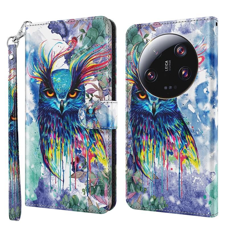 Θήκη τηλεφώνου δερμάτινη με σχέδιο 3D ζωγραφικής για Xiaomi 13 Ultra (Ακουάρελα Γλαύκα)