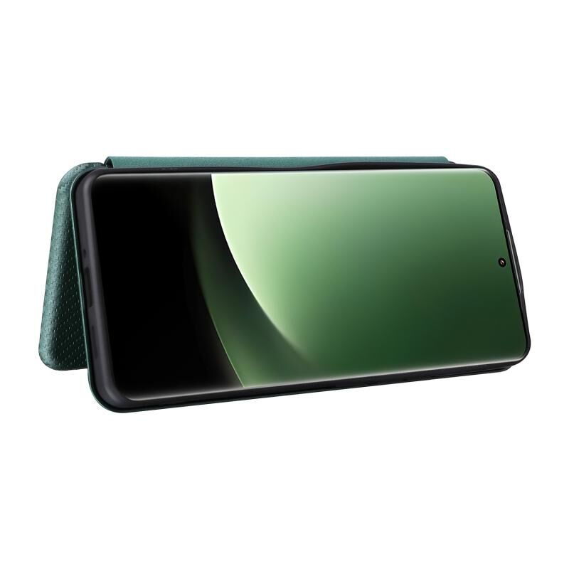Για Xiaomi 13 Ultra Carbon Fiber Texture Flip δέρμα τηλέφωνο υπόθεση (πράσινο)