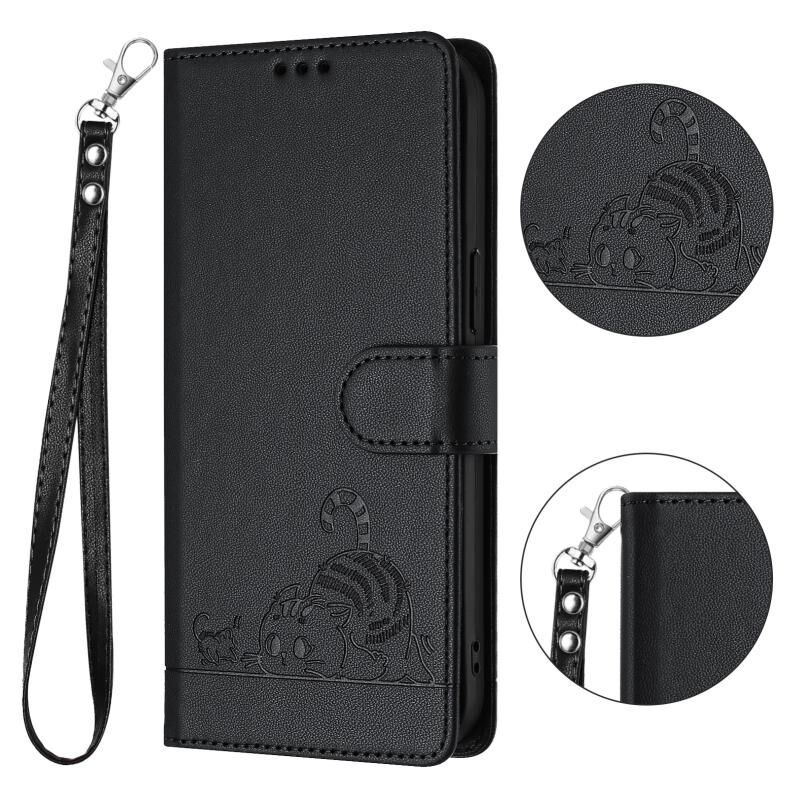 Θήκη Xiaomi 13 Ultra με σχέδιο γάτας/ποντικιού & λουρί καρπού RFID (Μαύρο)