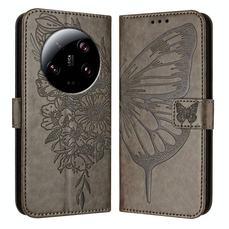 Για Xiaomi 13 Ultra ανάγλυφη πεταλούδα δερμάτινη θήκη τηλεφώνου (γκρι)