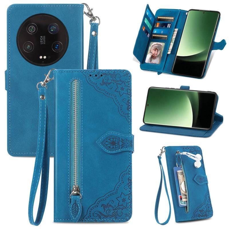 Για Xiaomi 13 Ultra ανάγλυφο λουλούδι φερμουάρ δερμάτινη θήκη τηλεφώνου (Μπλε)