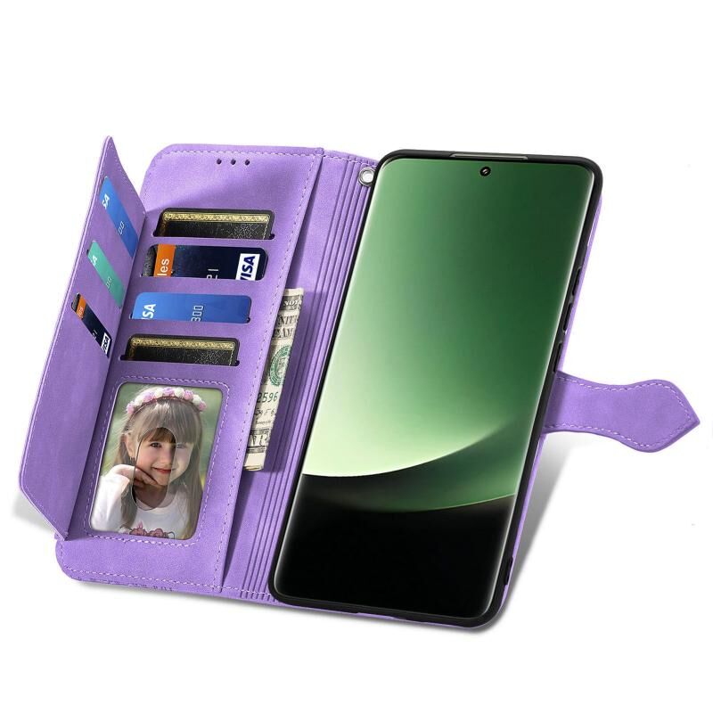 Για Xiaomi 13 Ultra ανάγλυφο λουλούδι φερμουάρ δερμάτινη θήκη τηλεφώνου (μωβ)