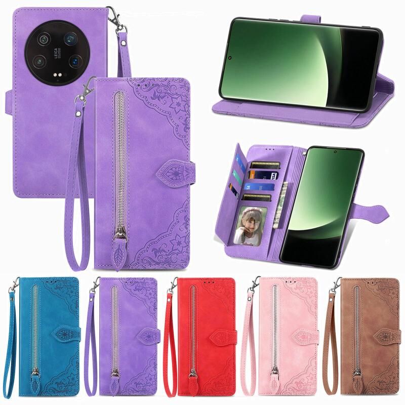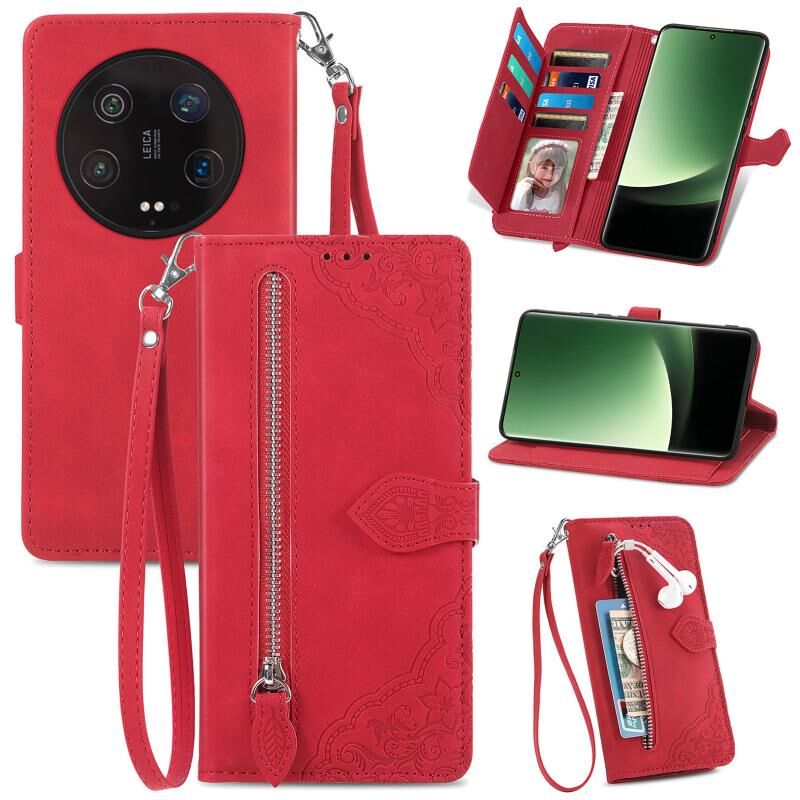 Για Xiaomi 13 Ultra ανάγλυφο λουλούδι φερμουάρ δερμάτινη θήκη τηλεφώνου (κόκκινο)