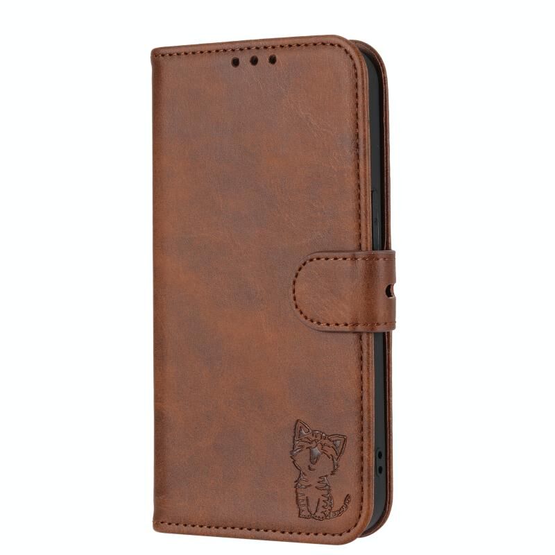 Για Xiaomi 13 Ultra Ανάγλυφο Happy Cat μοτίβο Flip δέρμα τηλέφωνο υπόθεση (καφέ)