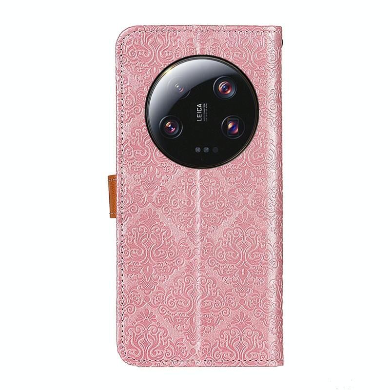 Για Xiaomi 13 Ultra Ευρωπαϊκή Floral ανάγλυφο Flip υπόθεση τηλεφώνου δέρμα (ρόζ)