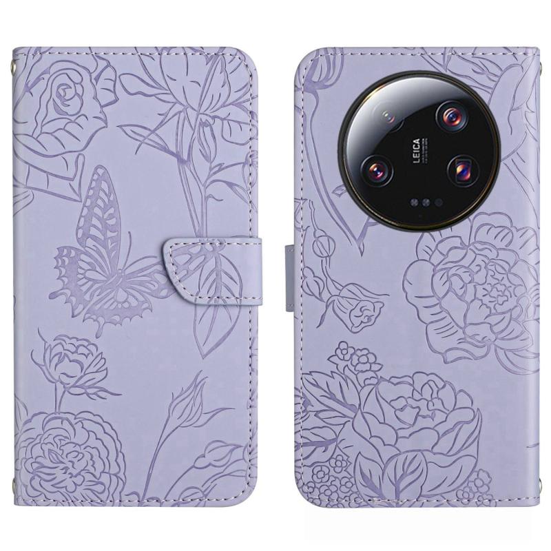 For Xiaomi 13 Ultra HT03 Skin Feel Butterfly Embossed Flip Leather Phone Case(Purple)