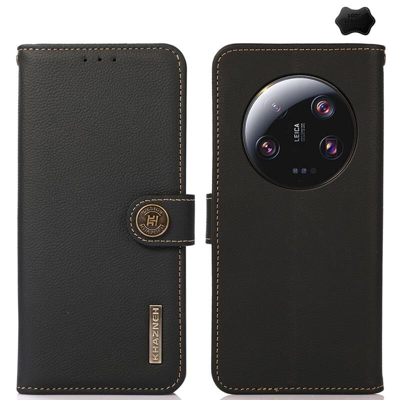 Θήκη τηλεφώνου από γνήσιο δέρμα RFID με υφή Custer KHAZNEH για Xiaomi 13 Ultra (Μαύρο)