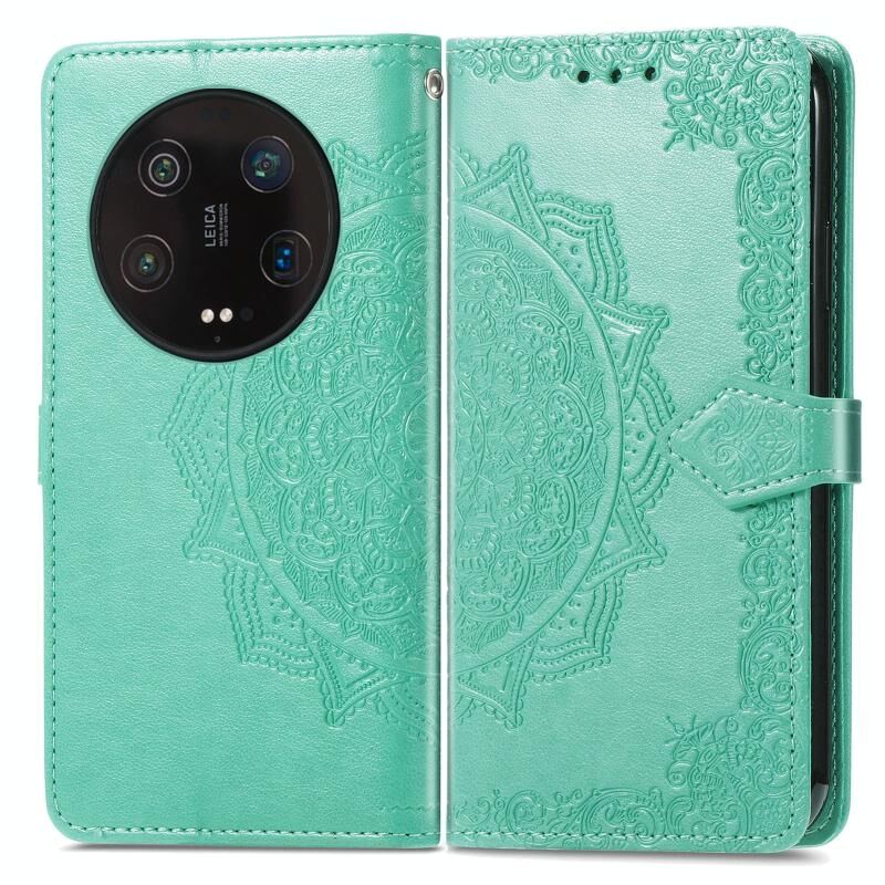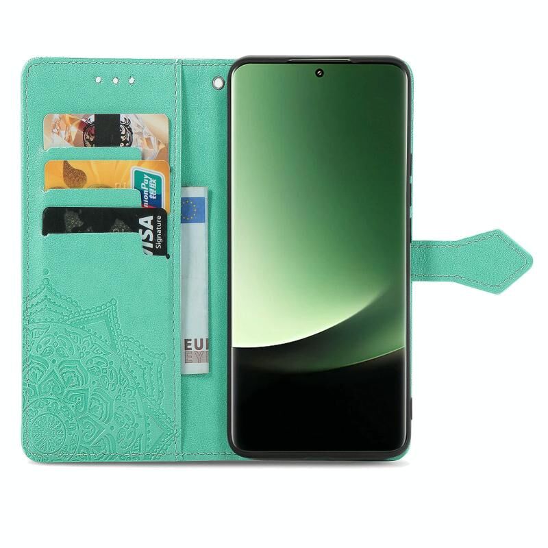 Για Xiaomi 13 Ultra Mandala λουλούδι ανάγλυφο δερμάτινη θήκη τηλεφώνου (πράσινο)
