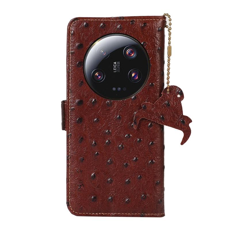 For Xiaomi 13 Ultra Ostrich Pattern Genuine Leather RFID Phone Case(Coffee)