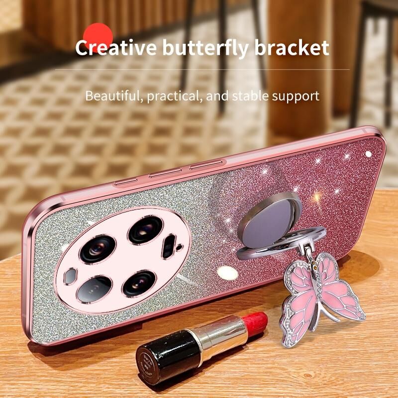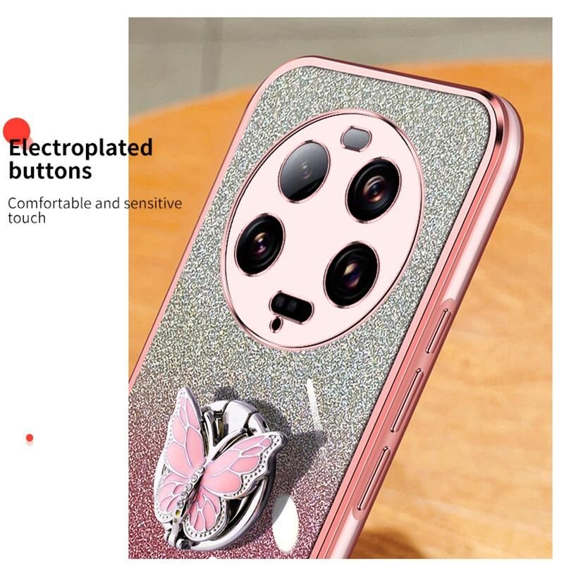 Για Xiaomi 13 Ultra επιμεταλλωμένο βαθμιδωτή Glitter πεταλούδα κάτοχος TPU τηλέφωνο υπόθεση (μαύρο)