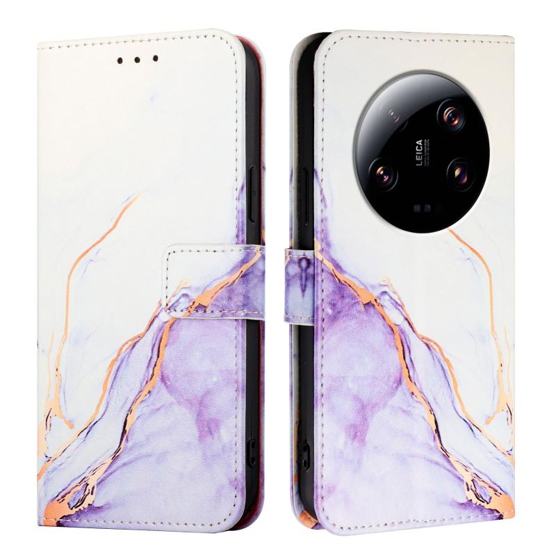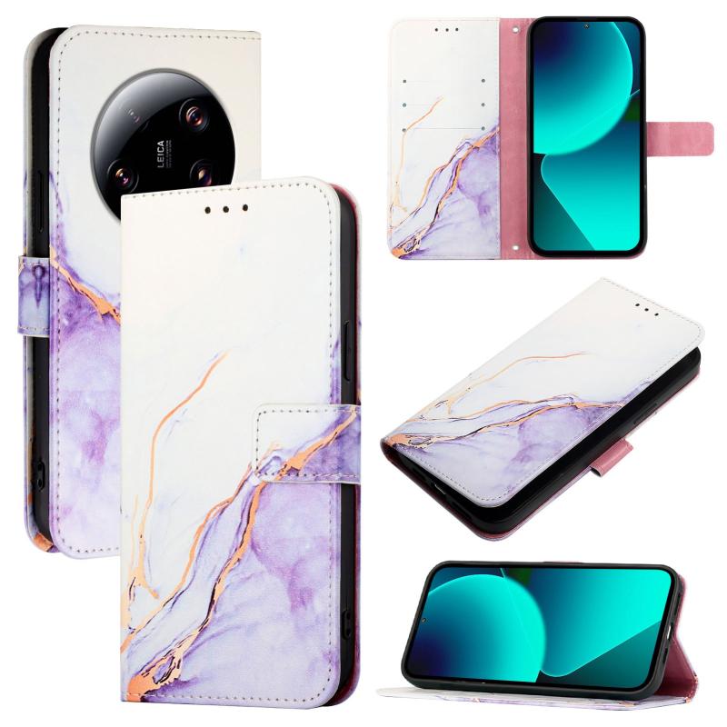 For Xiaomi 13 Ultra PT003 Marble Pattern Flip Leather Phone Case(White Purple)