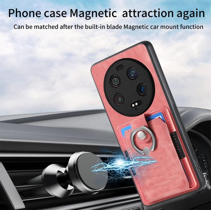 Για Xiaomi 13 Ultra Retro δέρμα-feel δέρμα-άισθησης δαχτυλίδι κάρτα πορτοφόλι υπόθεση τηλεφώνου (ροζ)