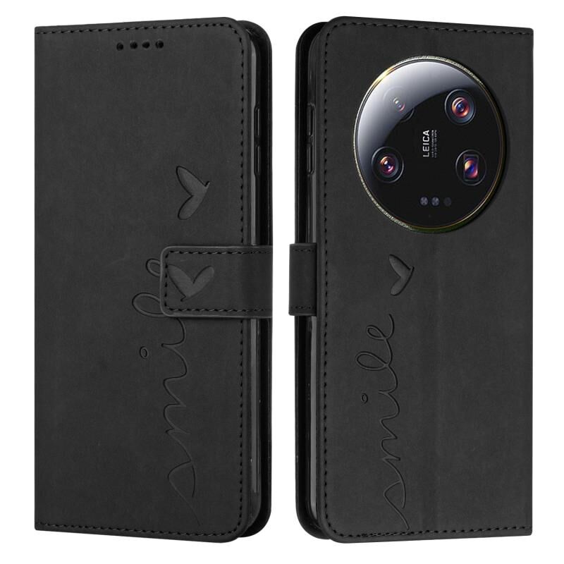 Για Xiaomi 13 Ultra δέρμα αίσθηση καρδιά μοτίβο δερμάτινη θήκη τηλεφώνου (μαύρο)