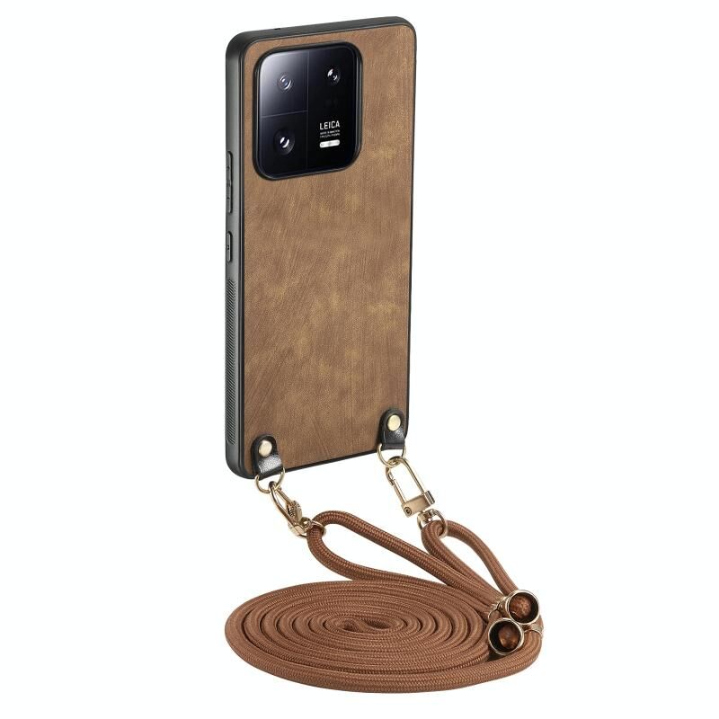 Για Xiaomi 13 εκλεκτής ποιότητας δέρμα PC πίσω κάλυψη υπόθεση τηλεφώνου με λουράκι σταυρού (Καφέ)