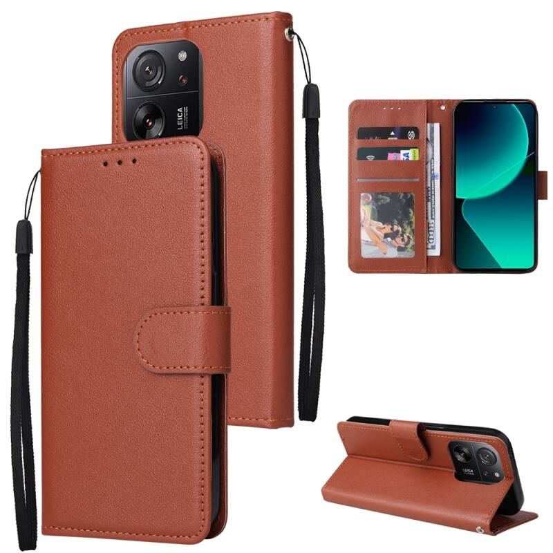 Για Xiaomi 13T / 13T Pro 3-Card Slots πολυλειτουργική δερμάτινη θήκη τηλεφώνου (καφέ)