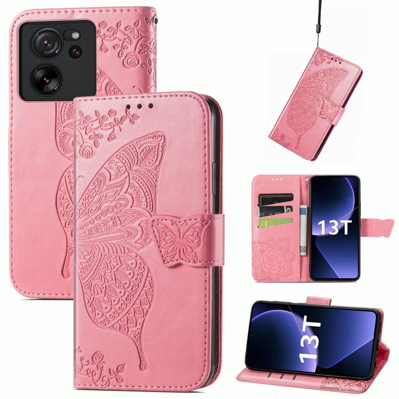 For Xiaomi 13T / 13T Pro Butterfly Love Flower Embossed Leather Phone Case(Pink)