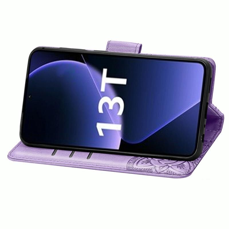 Θήκη τηλεφώνου δερμάτινη ανάγλυφη με σχέδιο πεταλούδας και λουλουδιών για Xiaomi 13T / 13T Pro (Χρυσαφί Ροζ)