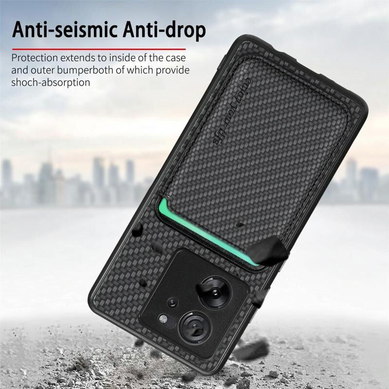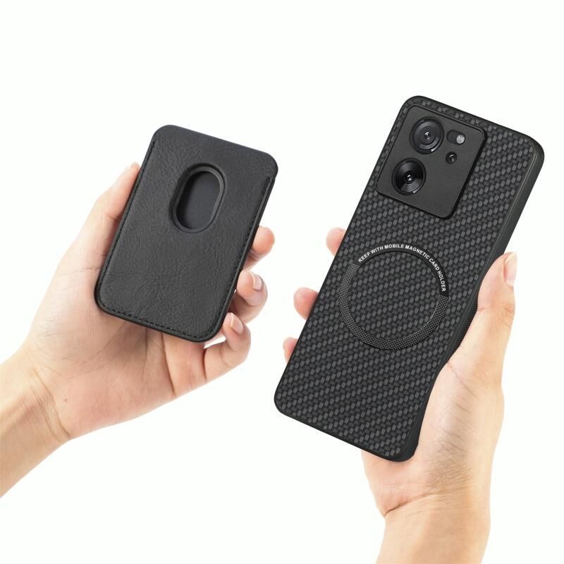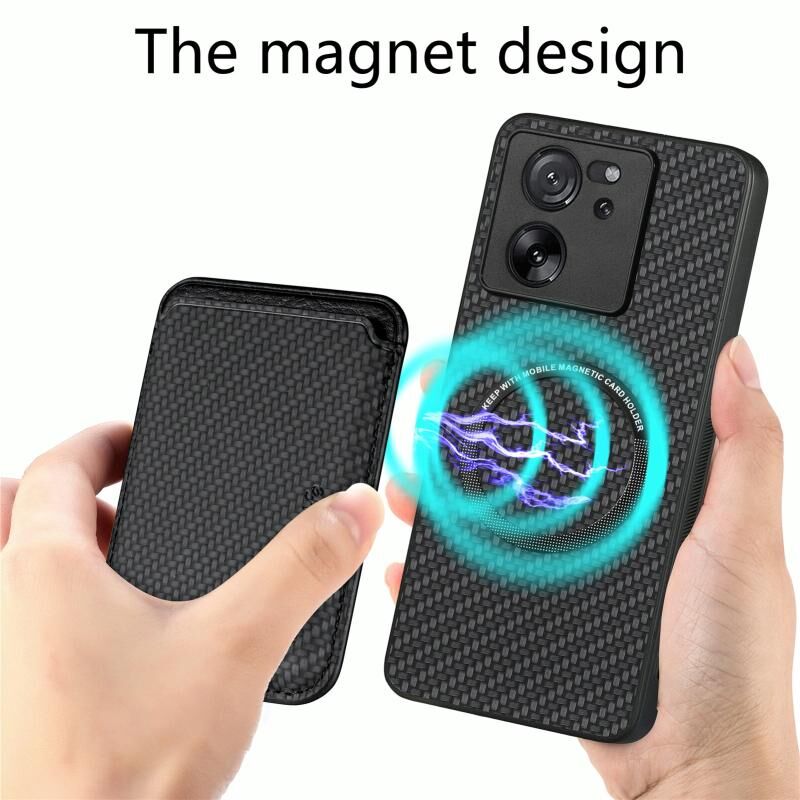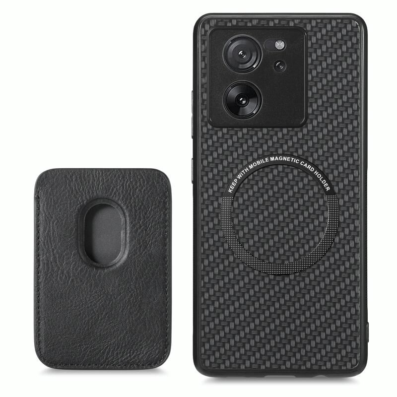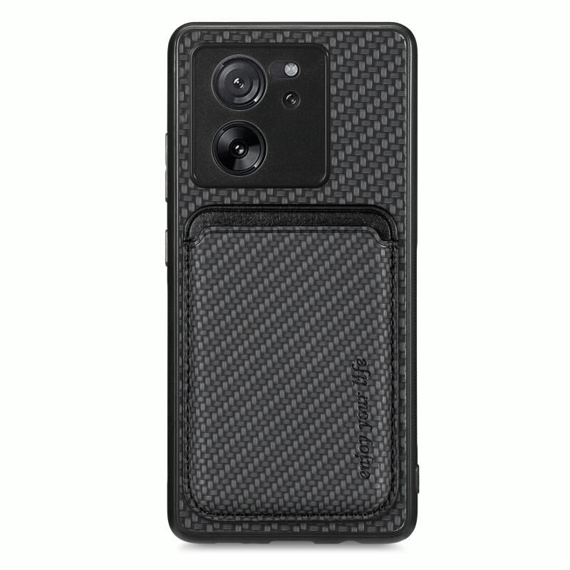 Για Xiaomi 13T / 13T Pro Carbon Fiber Δερμάτινη κάρτα μαγνητική υπόθεση τηλεφώνου (μαύρο)