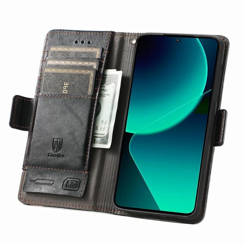 Για Xiaomi 13T / 13T Pro CaseNeo Splicing Διπλή μαγνητική πόρπη δερμάτινη θήκη τηλεφώνου (μαύρο)