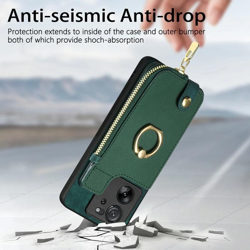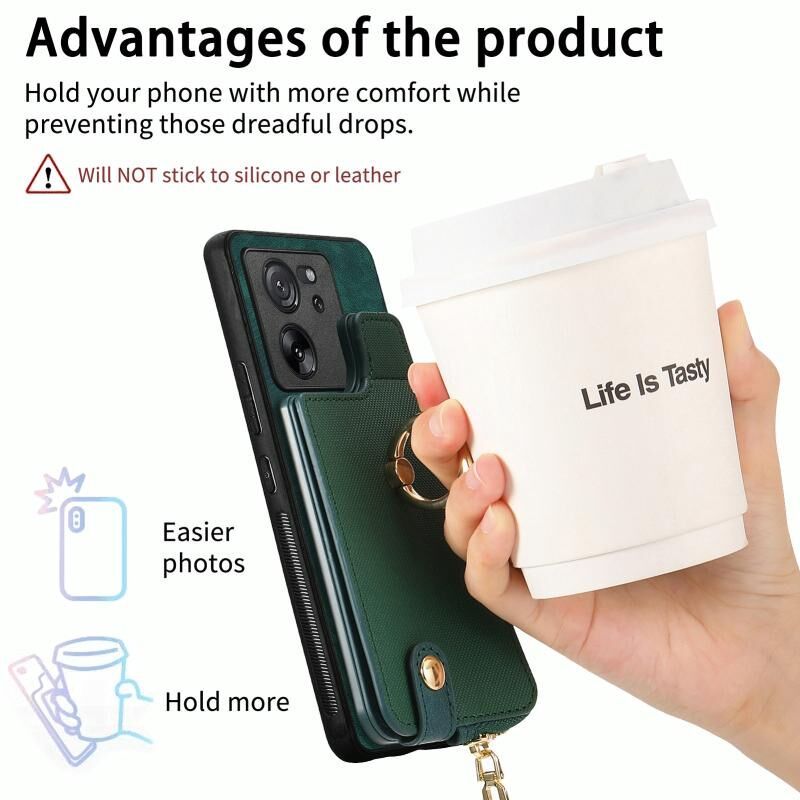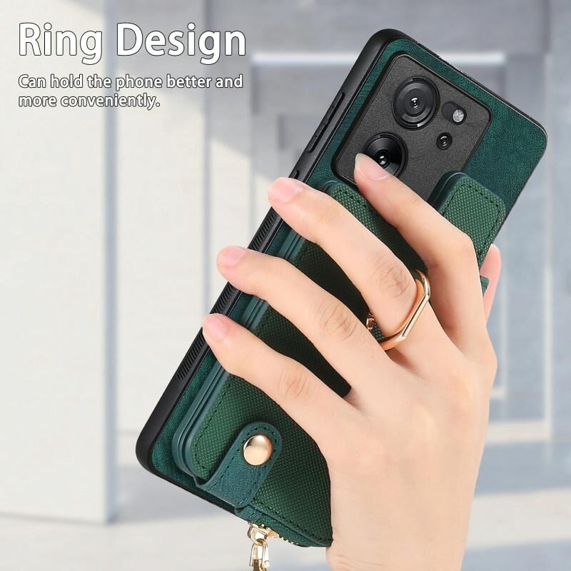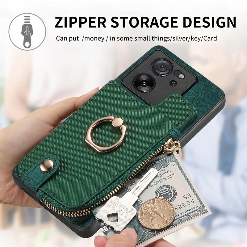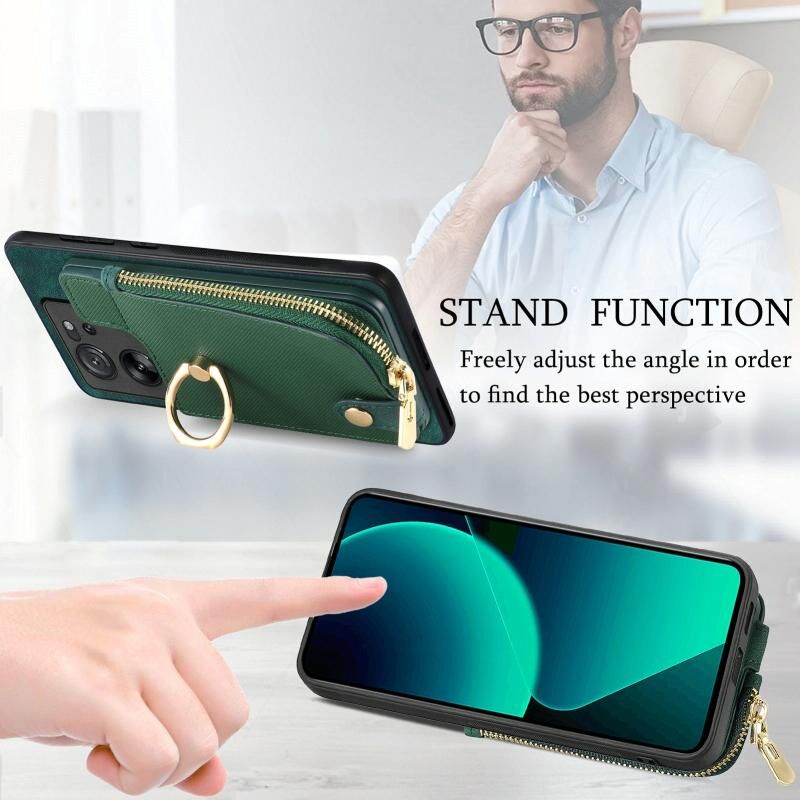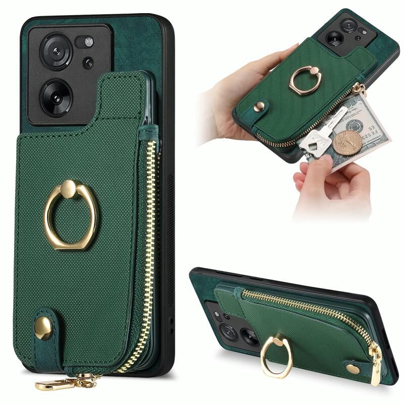 Για Xiaomi 13T / 13T Pro Cross Δερμάτινο δαχτυλίδι κάθετη φερμουάρ πορτοφόλι πίσω υπόθεση τηλεφώνου (πράσινο)
