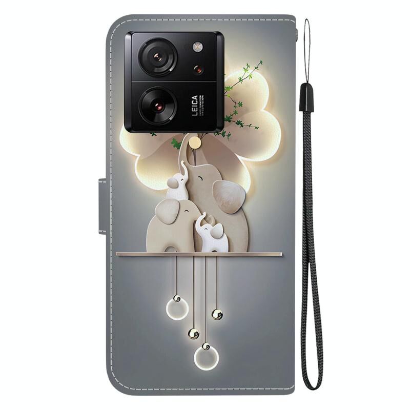 Θήκη τηλεφώνου από δέρμα με πολύχρωμη σχεδίαση κρυστάλλινης υφής για Xiaomi 13T / 13T Pro (Ελέφαντες)