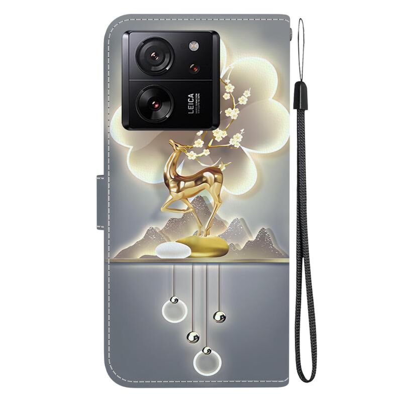 Θήκη τηλεφώνου από δέρμα με πολύχρωμη σχεδίαση κρυστάλλινης υφής για Xiaomi 13T / 13T Pro (Ελάφι Σίκα)