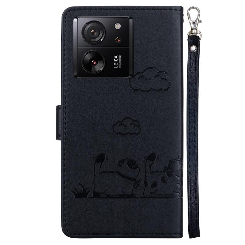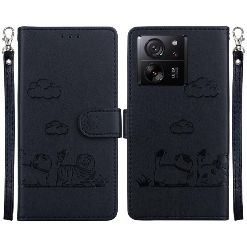 Θήκη τηλεφώνου από δέρμα με χαριτωμένες γάτες RFID για Xiaomi 13T / 13T Pro (Μωβ)