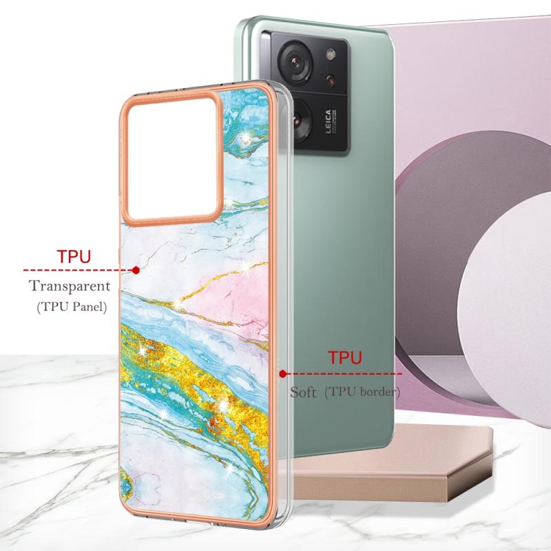 For Xiaomi 13T/13T Pro Electroplating Marble Dual-side IMD Phone Case(Green 004)