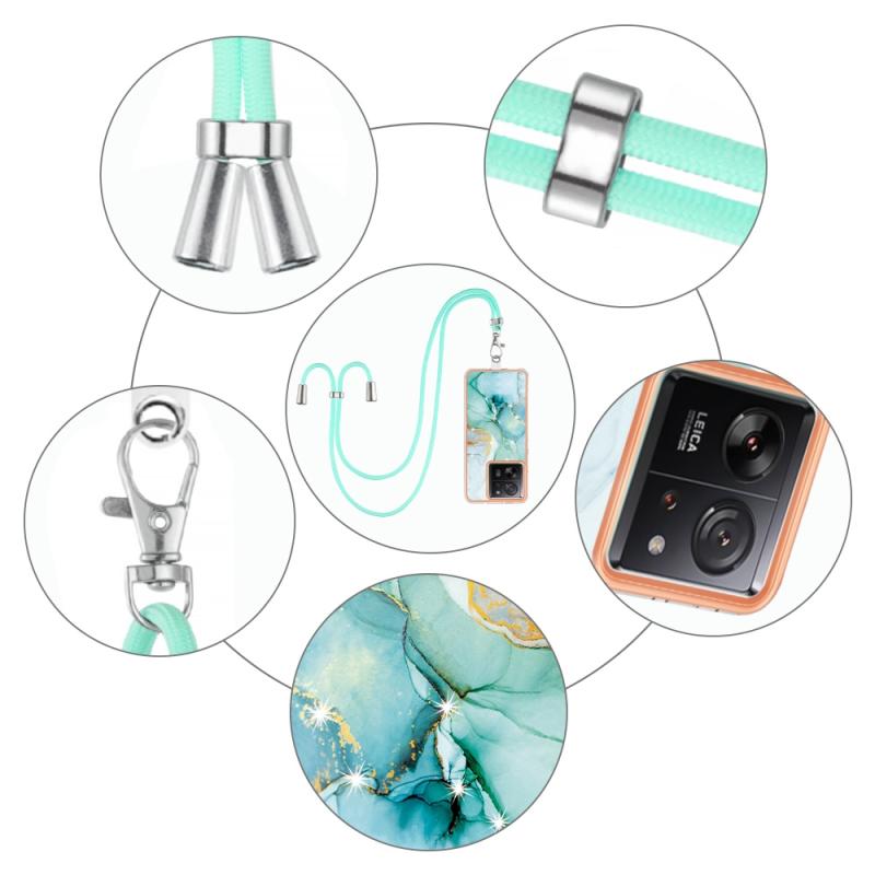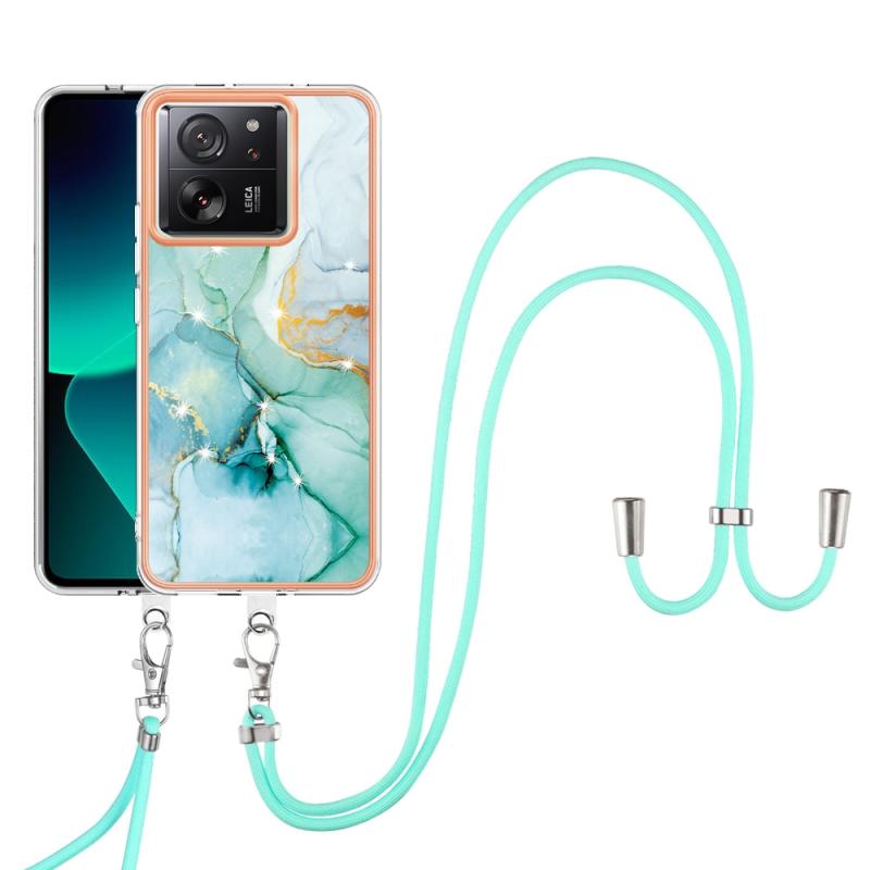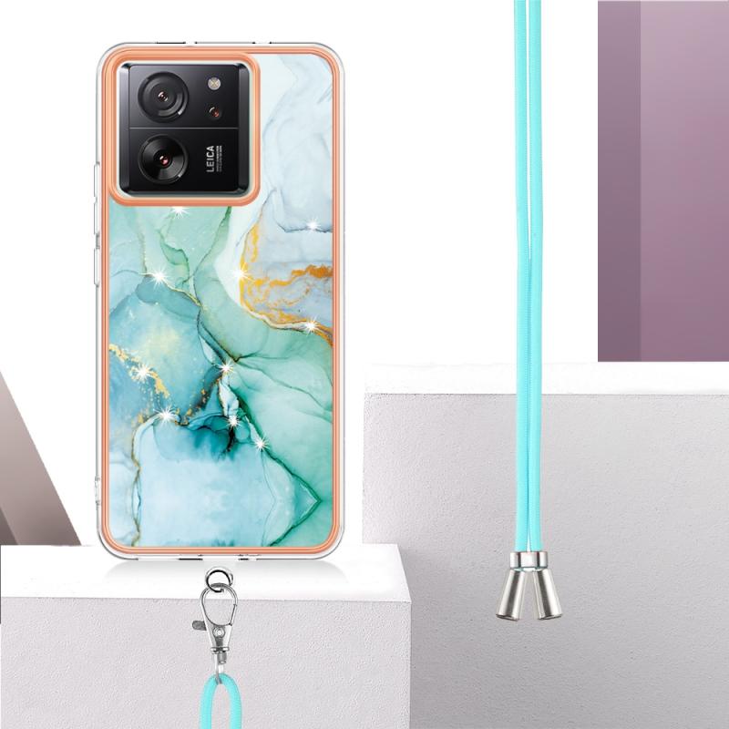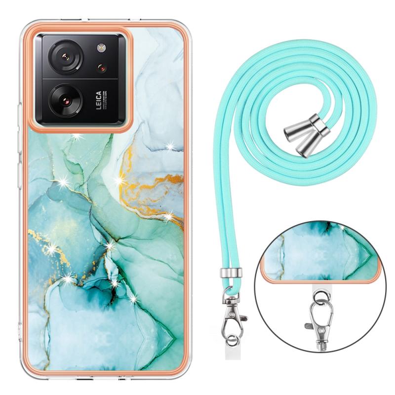 For Xiaomi 13T/13T Pro Electroplating Marble Dual-side IMD Phone Case with Lanyard(Green 003)