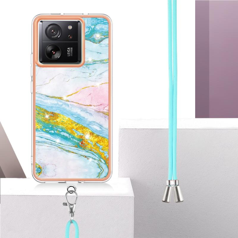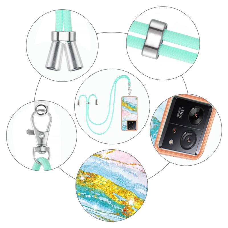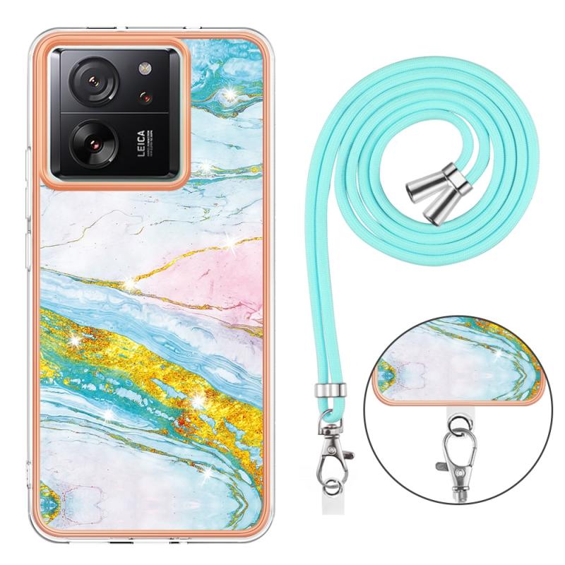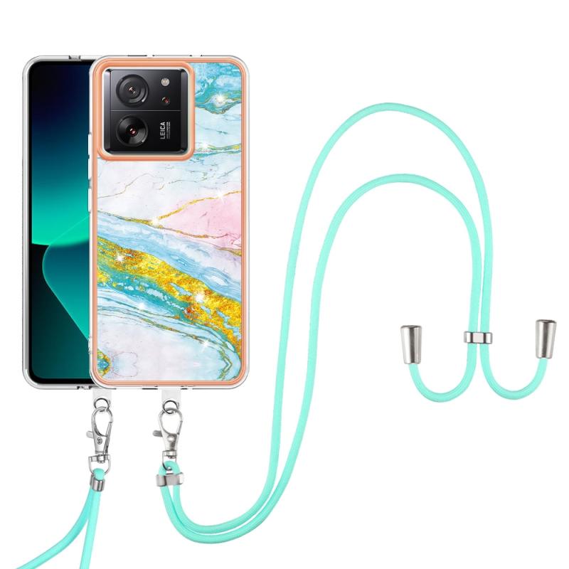 For Xiaomi 13T/13T Pro Electroplating Marble Dual-side IMD Phone Case with Lanyard(Green 004)