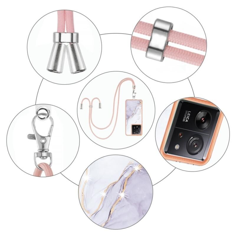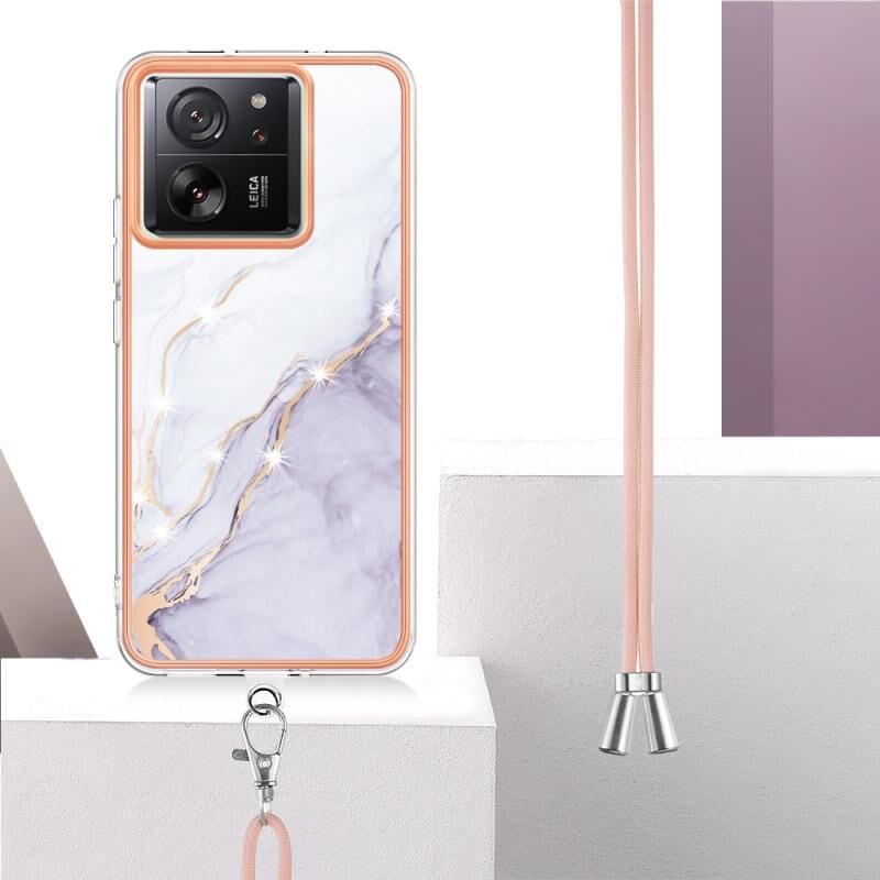 Θήκη τηλεφώνου με κορδόνι για Xiaomi 13T/13T Pro, με ηλεκτρολυτική μαρμάρινη επένδυση IMD διπλής όψης (Λευκό 006)