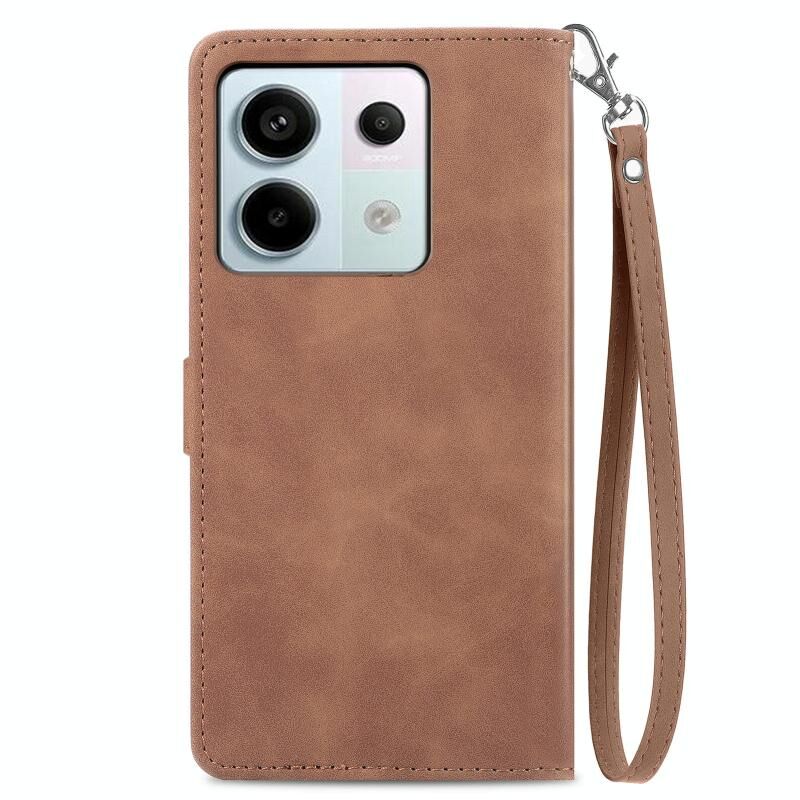 Για Xiaomi 13T / 13T Pro ανάγλυφο λουλούδι φερμουάρ δερμάτινη θήκη τηλεφώνου (Καφέ)