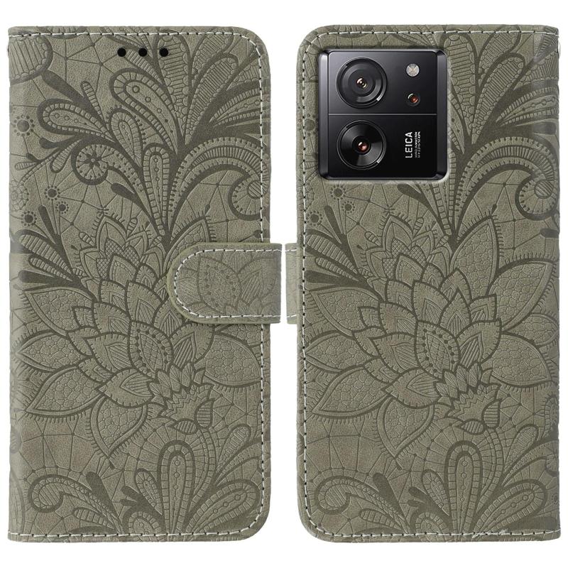 For Xiaomi 13T / 13T Pro Lace Flower Embossing Flip Leather Phone Case(Grey)