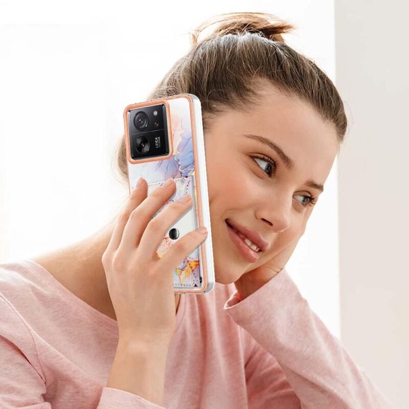 Θήκη κινητού τηλεφώνου με θήκη κάρτας IMD με σχέδιο μαρμάρου για Xiaomi 13T / 13T Pro (Λευκό Μάρμαρο Γαλαξία)