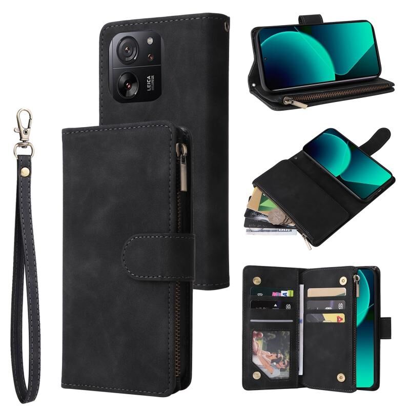 Για Xiaomi 13T / 13T Pro Πολυλειτουργικό παγωμένο φερμουάρ πορτοφόλι δερμάτινη θήκη τηλεφώνου (μαύρο)