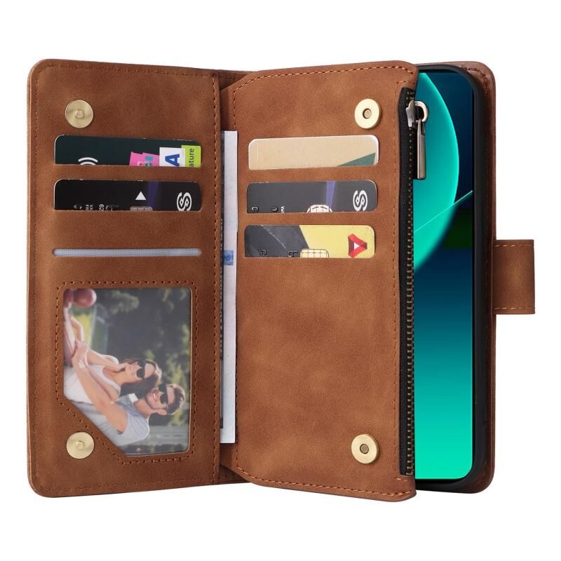 Για Xiaomi 13T / 13T Pro Πολυλειτουργικό παγωμένο φερμουάρ πορτοφόλι δερμάτινη θήκη τηλεφώνου (καφέ)