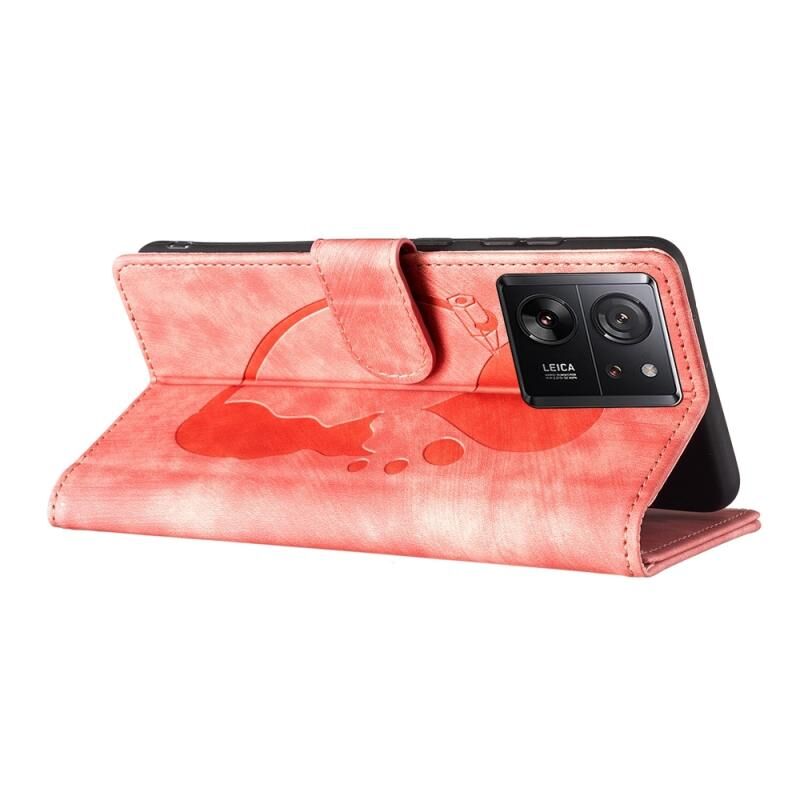 Θήκη τηλεφώνου από δέρμα με ανάγλυφο σχέδιο καρδιάς και γάτας για Xiaomi 13T / 13T Pro (Πορτοκαλί)