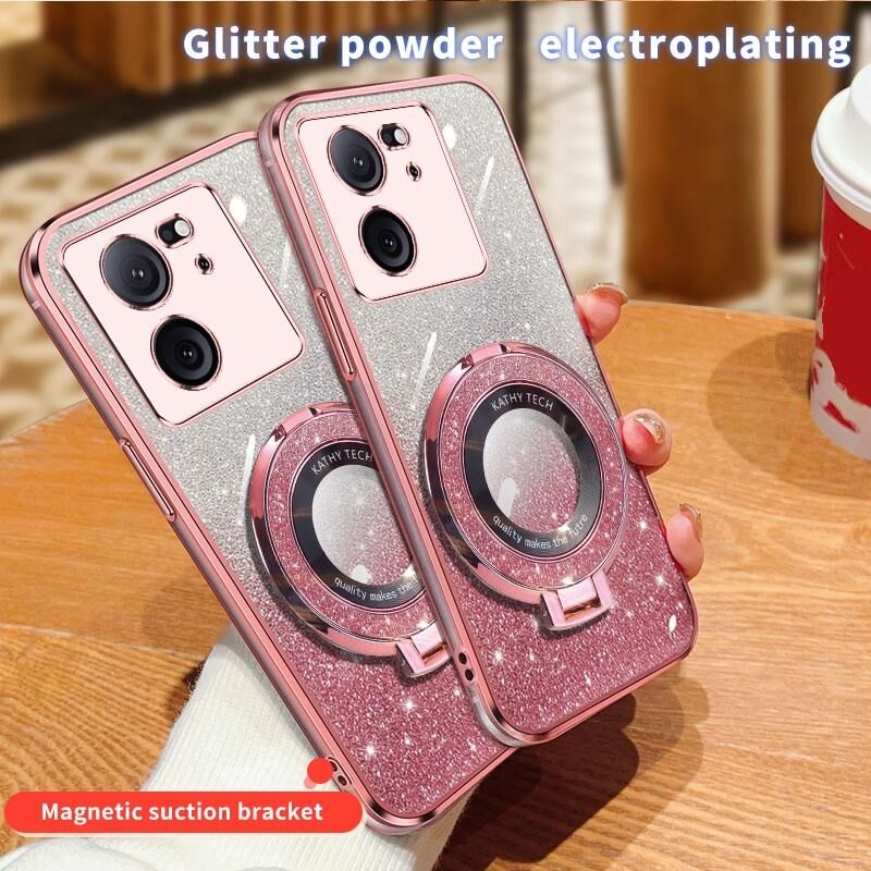 Για Xiaomi 13T / 13T Pro επιμεταλλωμένο βαθμιδωτή Glitter στρογγυλή θήκη TPU τηλέφωνο κάτοχος (μαύρο)