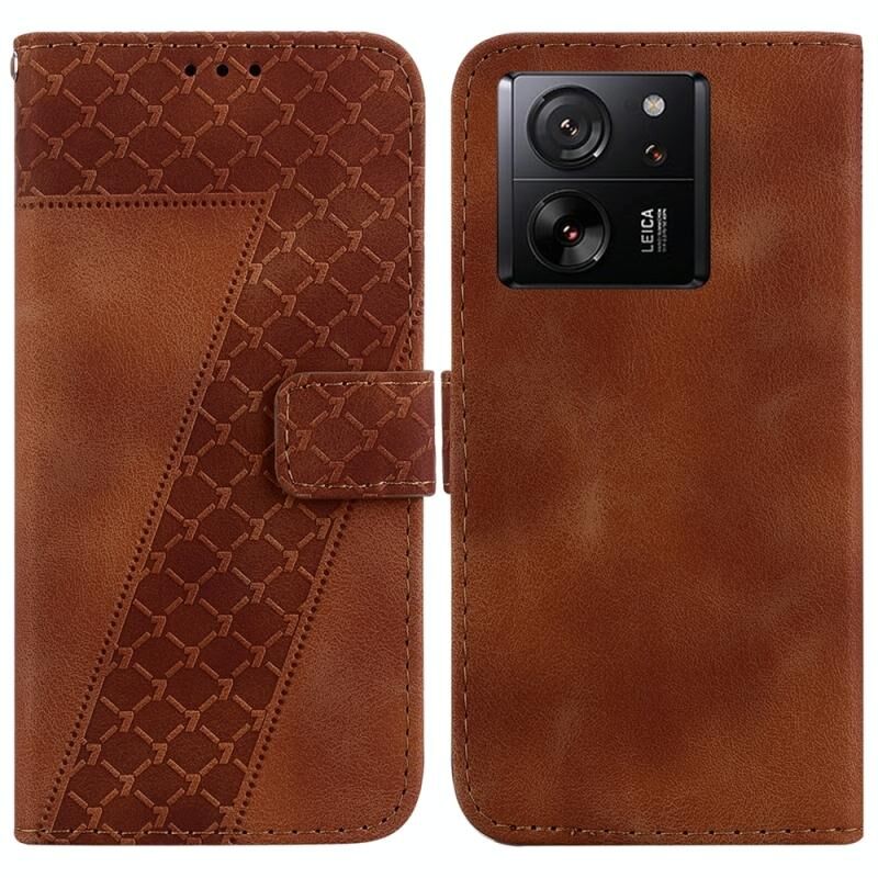 Για Xiaomi 13T / 13T Pro / Redmi K60 Ultra 7-shaped ανάγλυφη δερμάτινη θήκη τηλεφώνου (καφέ)