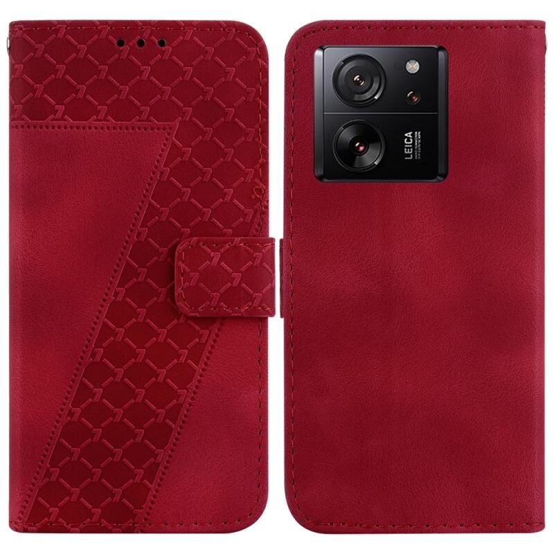 Για Xiaomi 13T / 13T Pro / Redmi K60 Ultra 7-shaped ανάγλυφη δερμάτινη θήκη τηλεφώνου (κόκκινο)