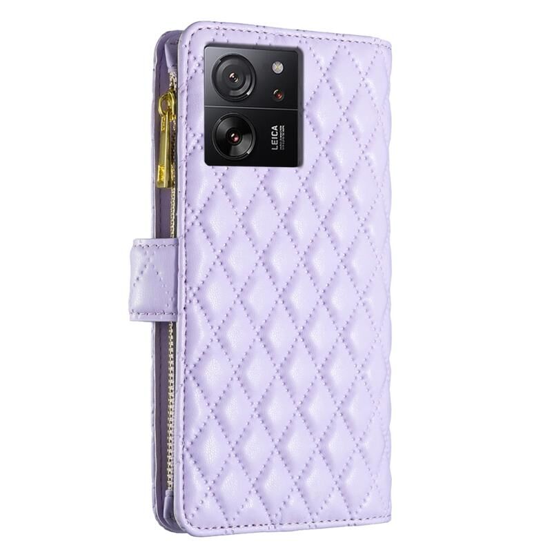 Για Xiaomi 13T / 13T Pro / Redmi K60 Ultra Diamond Lattice φερμουάρ πορτοφόλι δερμάτινη θήκη Flip τηλέφωνο (μωβ)